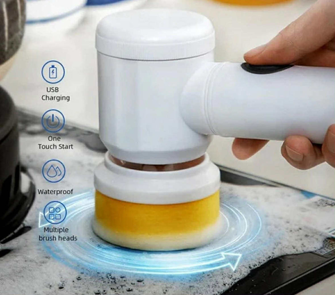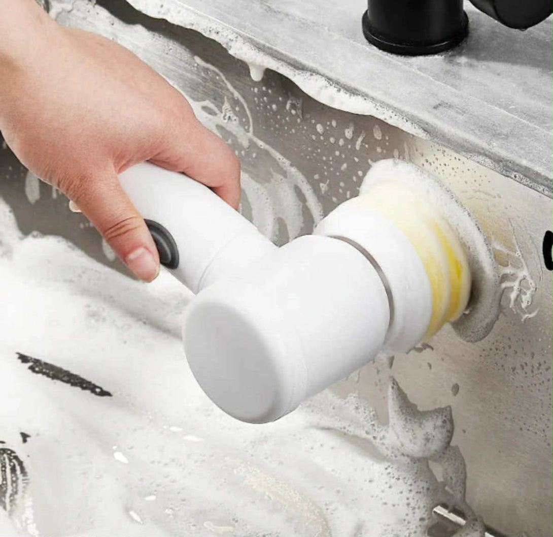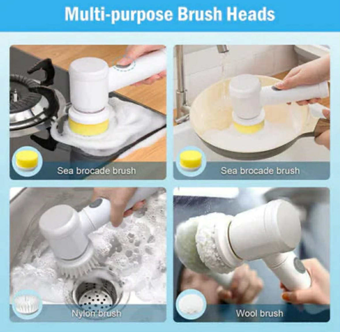 ✅ 5-in-1 Multifunctional Cleaning Tool – Includes 5 interchangeable brush heads designed for cleaning various surfaces like tiles, sinks, bathtubs, stoves, and more.
