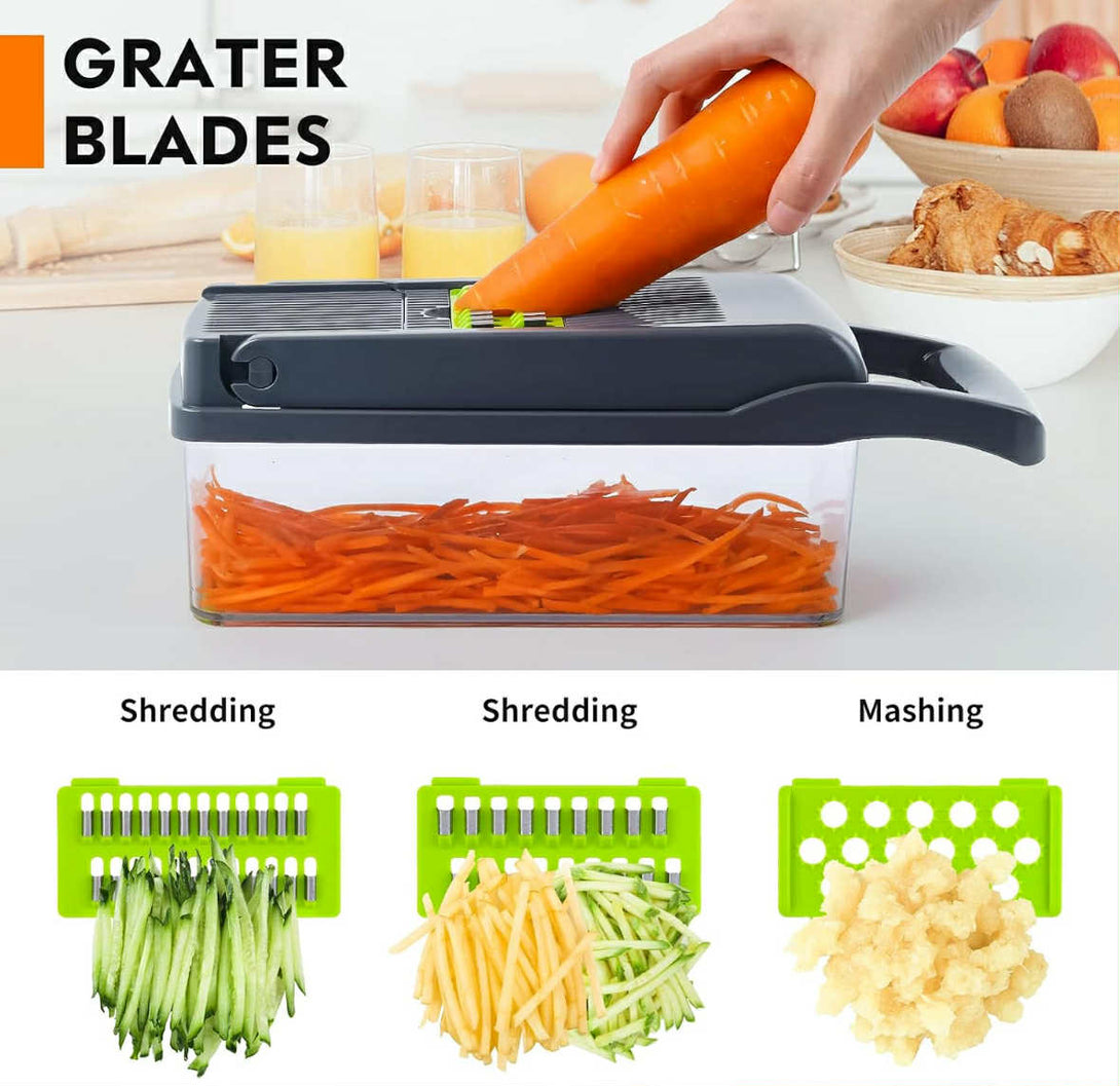 ✅ 16-in-1 Multifunctional Set – Includes interchangeable blades for slicing, dicing, grating, julienning, and more. Perfect for a variety of fruits and vegetables.